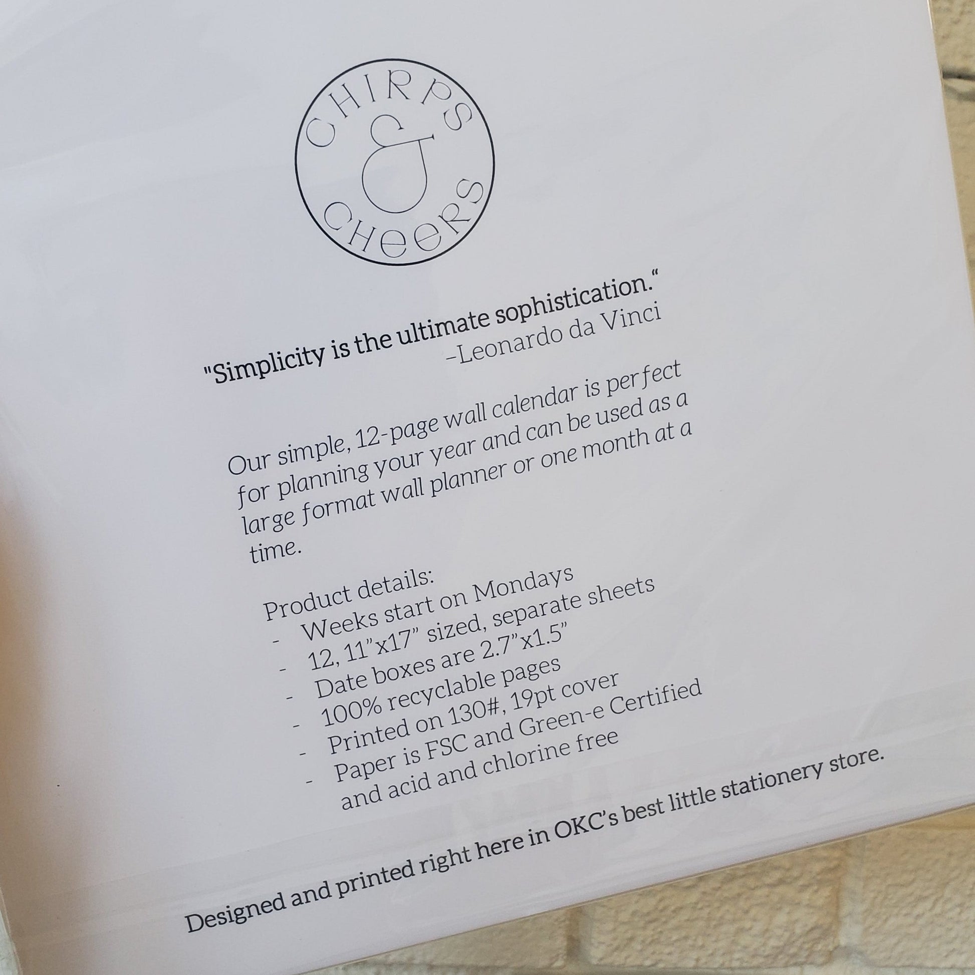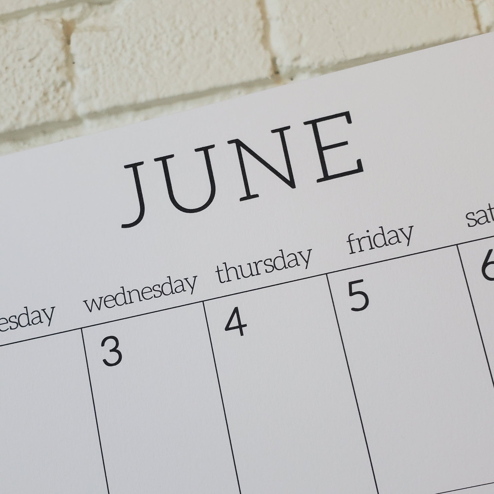 Our simple 12-page wall calendar is perfect for planning your year and can be used as a large format wall planner or one month at a time.