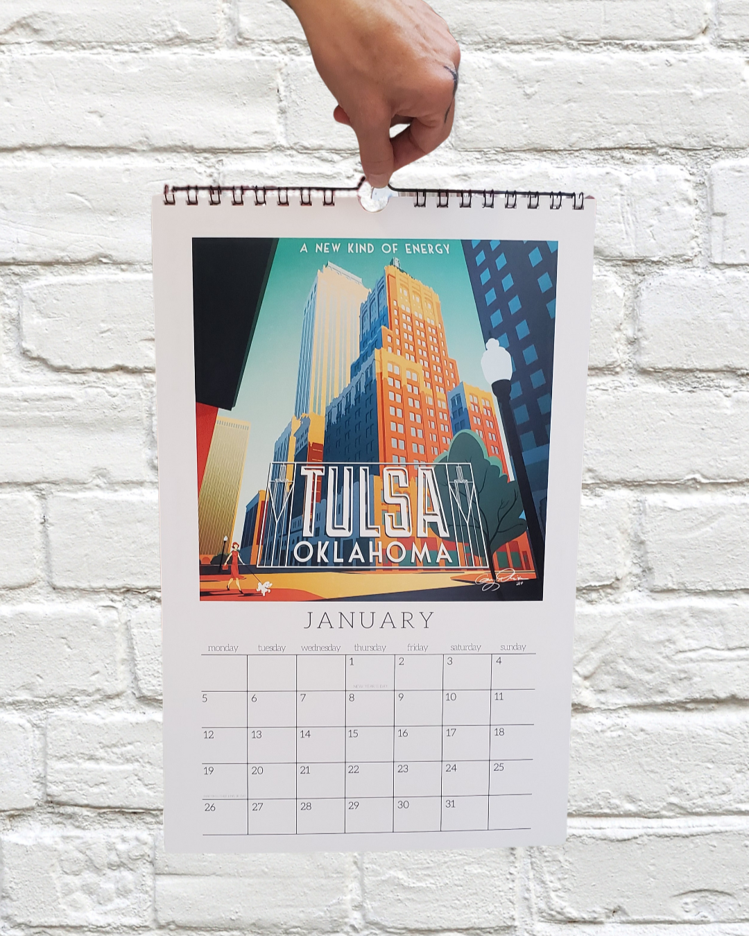 For the first time ever, introducing our Oklahoma Wall Calendar! We’re so excited to bring another calendar made in collaboration with local artist, Greg White. Each month features one of Greg’s Oklahoma-themed designs, including famous Oklahoma cities and parks.