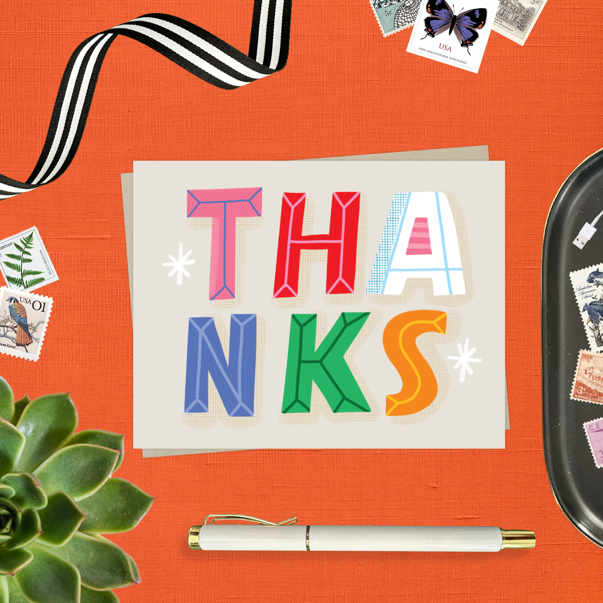 Say thank you in style with this fun and quirky greeting card! Featuring playful hand-lettering and a bold design, this card adds a cheerful touch to any heartfelt message. Perfect for thank you cards, greeting cards, and everyday appreciation, it’s a great way to spread gratitude with personality. Whether for a friend, customer, or someone who made your day, this modern thank you card is sure to bring a smile!