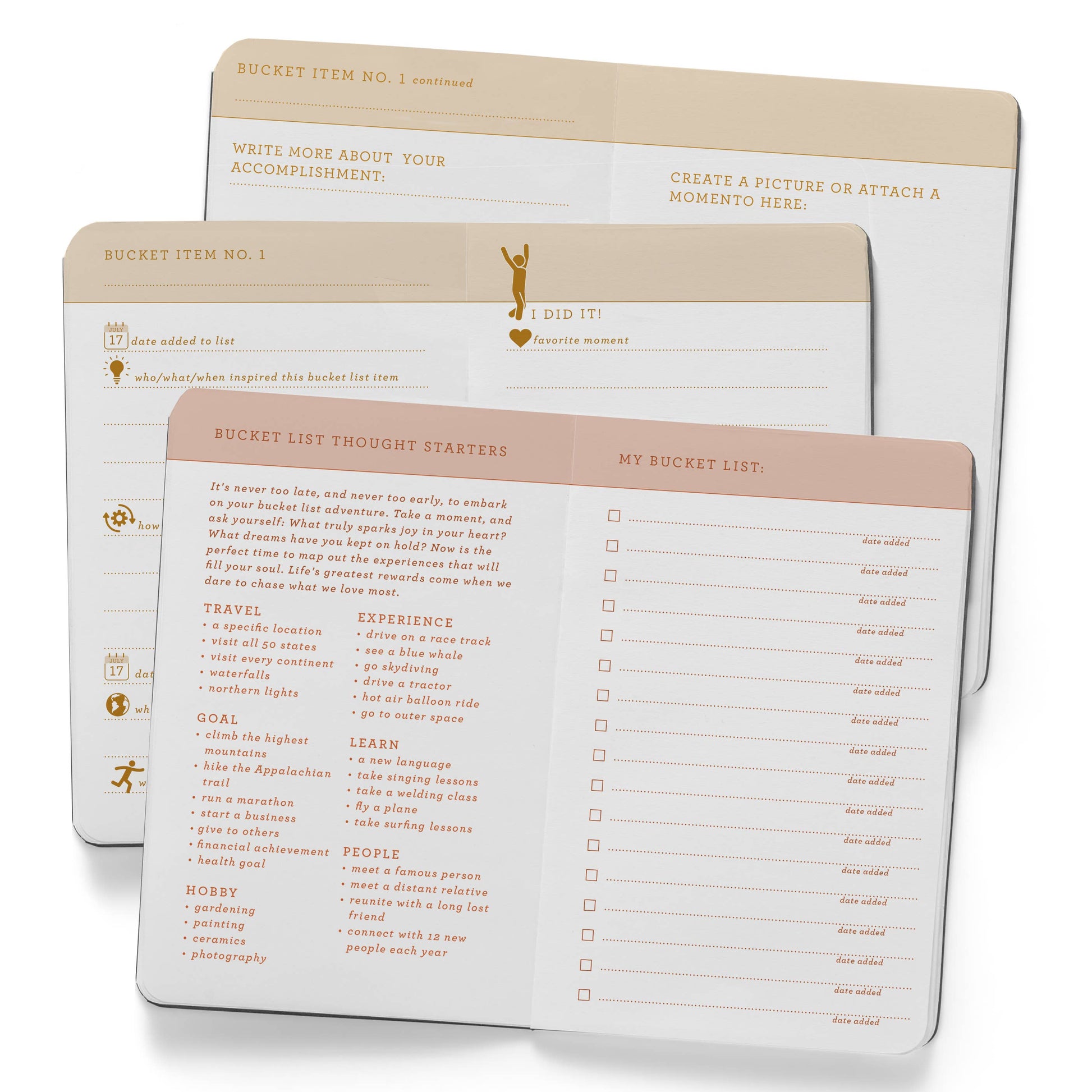 Dream big, accomplish more, and celebrate every milestone with this inspiring bucket list journal. Designed to help you map out your goals and document your journey, it features guided prompts to record the "who, what, and when" behind your bucket list items. Thought starters inspire ideas across categories like travel, hobbies, personal growth, and life experiences. Once you've checked off a goal, reflect on your favorite moments, attach photos or mementos, and celebrate your achievements with pride. Whether it's skydiving, learning a new skill, or visiting an unforgettable destination, this journal is your ultimate companion for living life to the fullest.