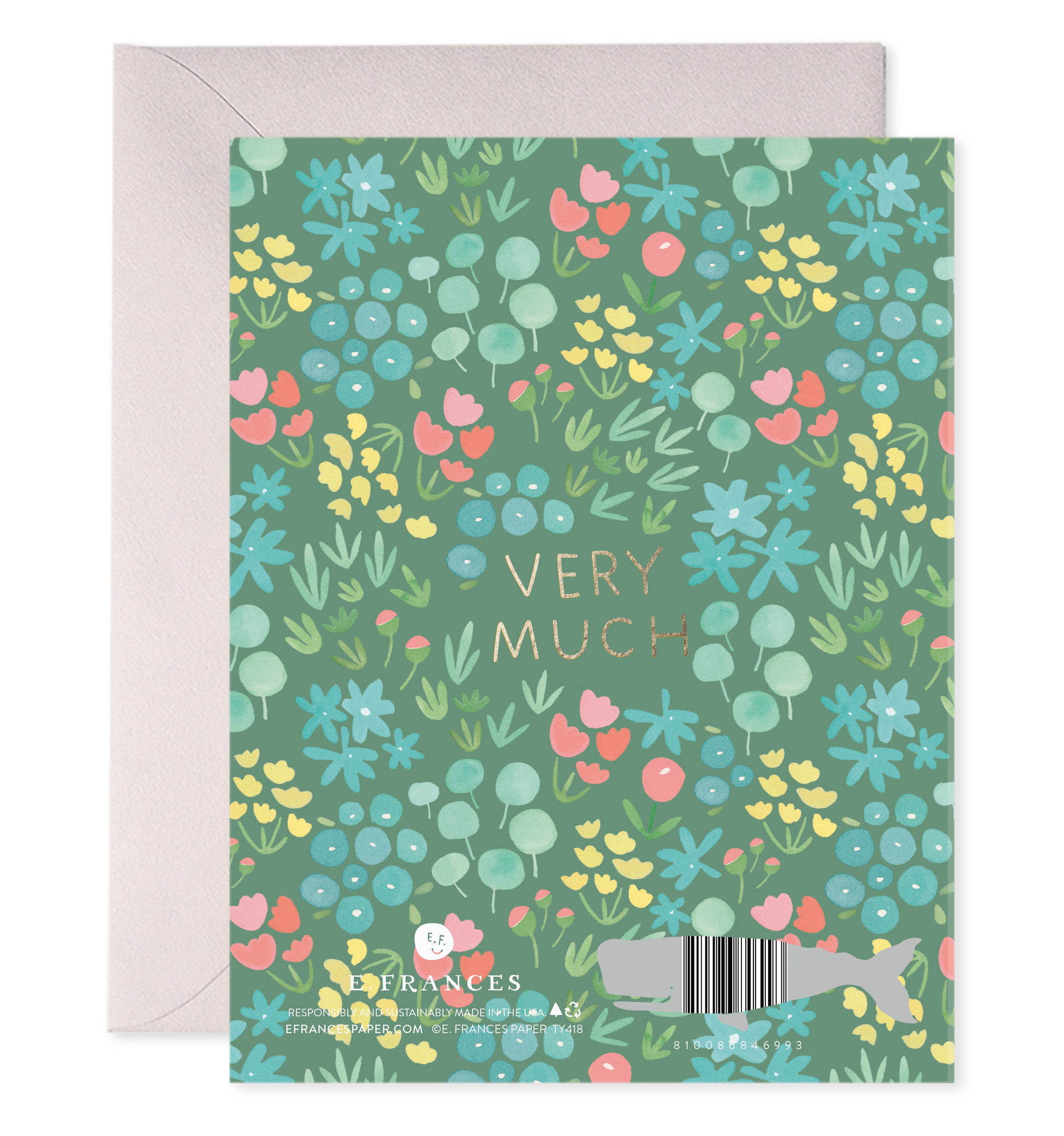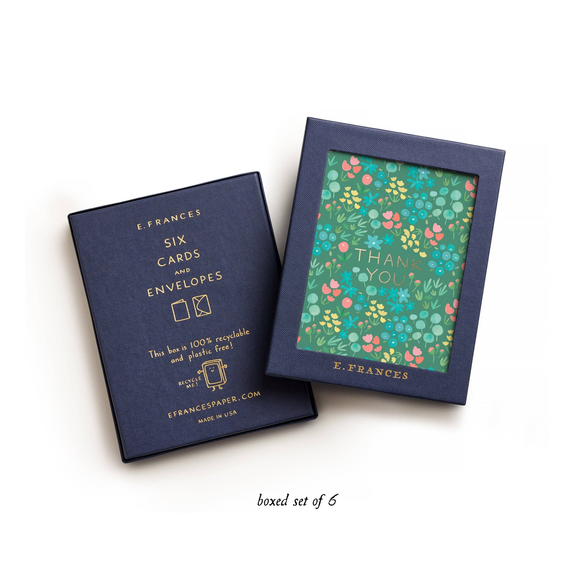 Each E. Frances card begins as an original watercolor painting, is then printed in brilliant color on luxe, heavyweight paper and is finally kissed with gold foil.