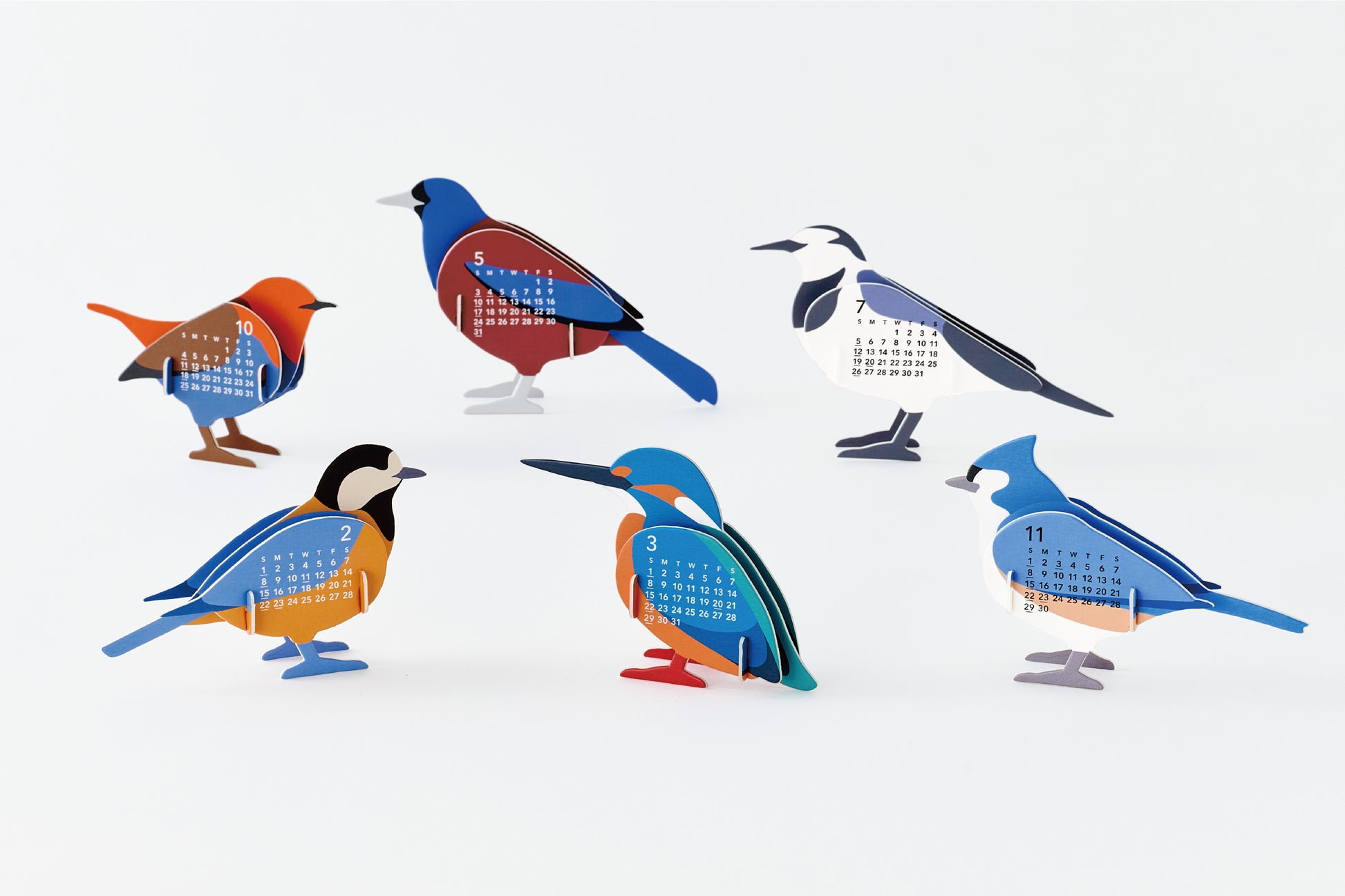The Birds papercraft kit is easy to assemble. No glue or scissors are needed. Assemble by fitting together parts with the same mark. Each bird will be a two-month calendar.