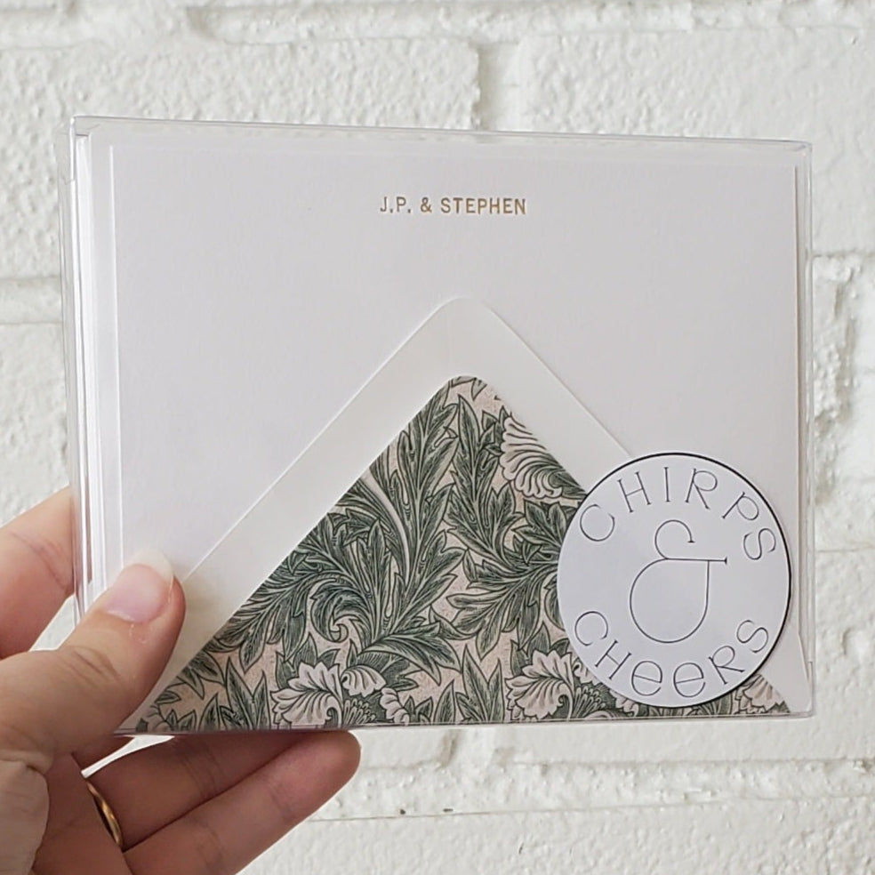Available in floral, lined, or solid liners with white or gold envelopes.