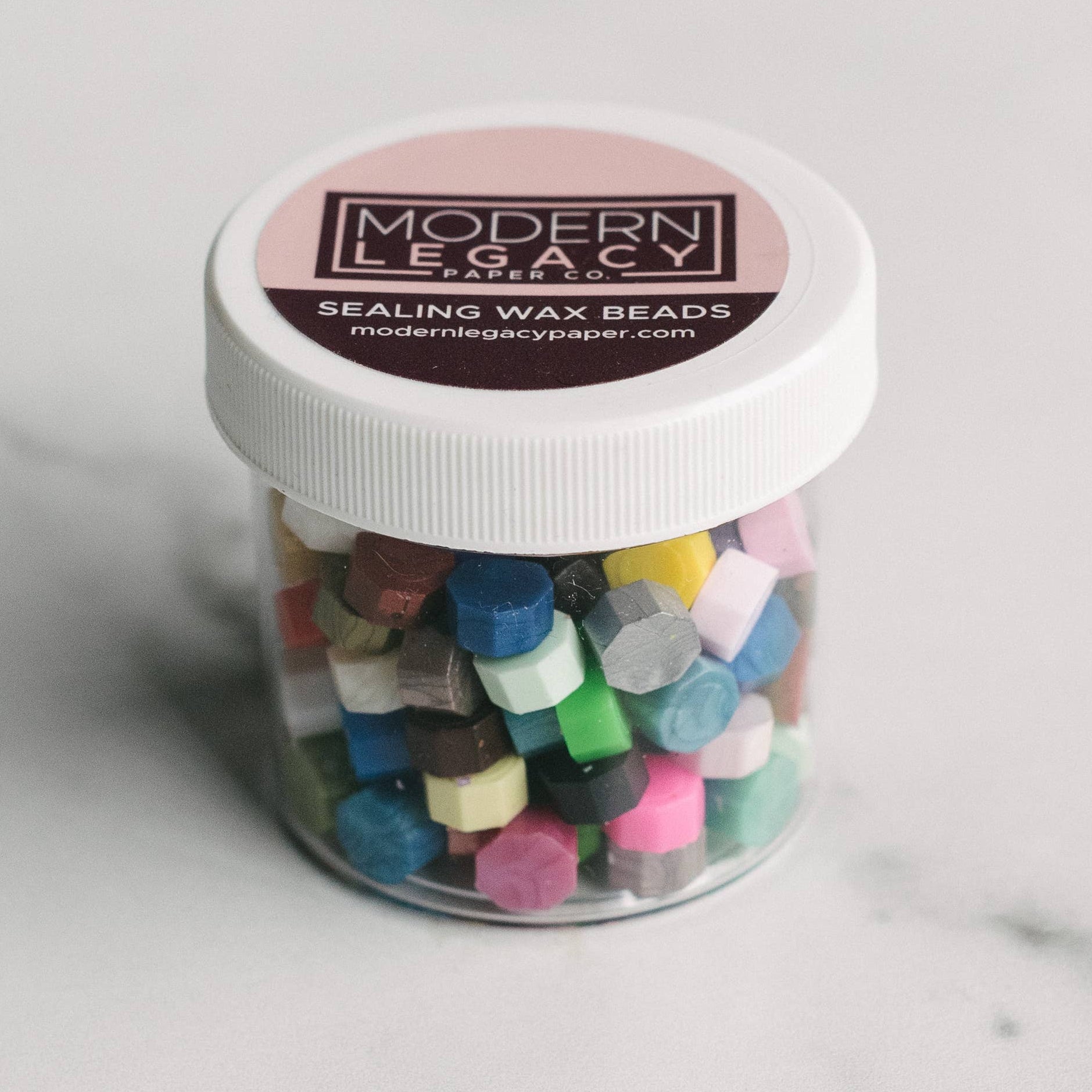 Jar of wax beads in various colors. Each container has about 175 beads. A 1-inch wax seal takes about 3-4 wax beads. Mix and match your wax beads for a fun marbled look.