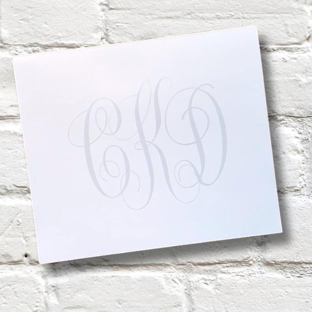This personalized notepad includes 250 sheets gummed at the top with a monogram of your choice. There are two size options available, the desk slab and super slab. Desk slabs are 6 x 6in and super slabs are 7.25 x 8.5in (see picture for size comparison). These make the perfect personalized gift for a wedding, promotion, or any celebratory occasion.