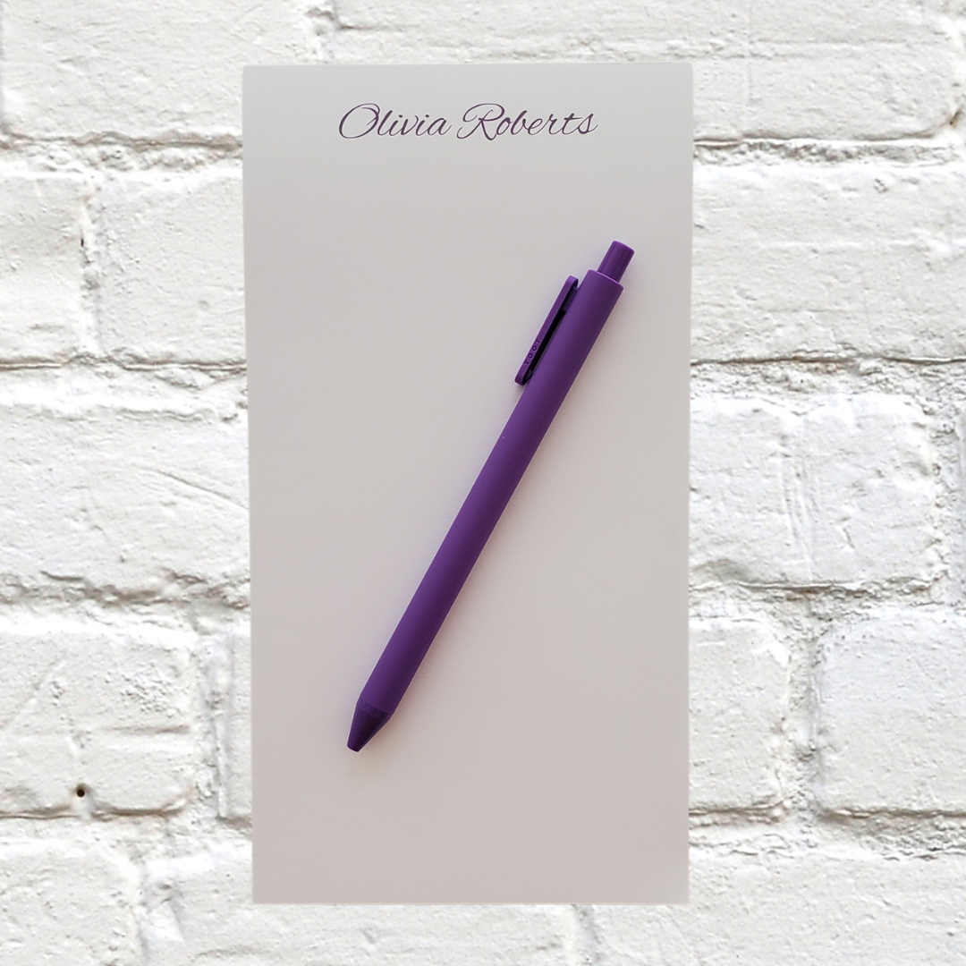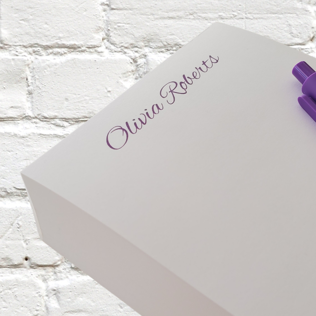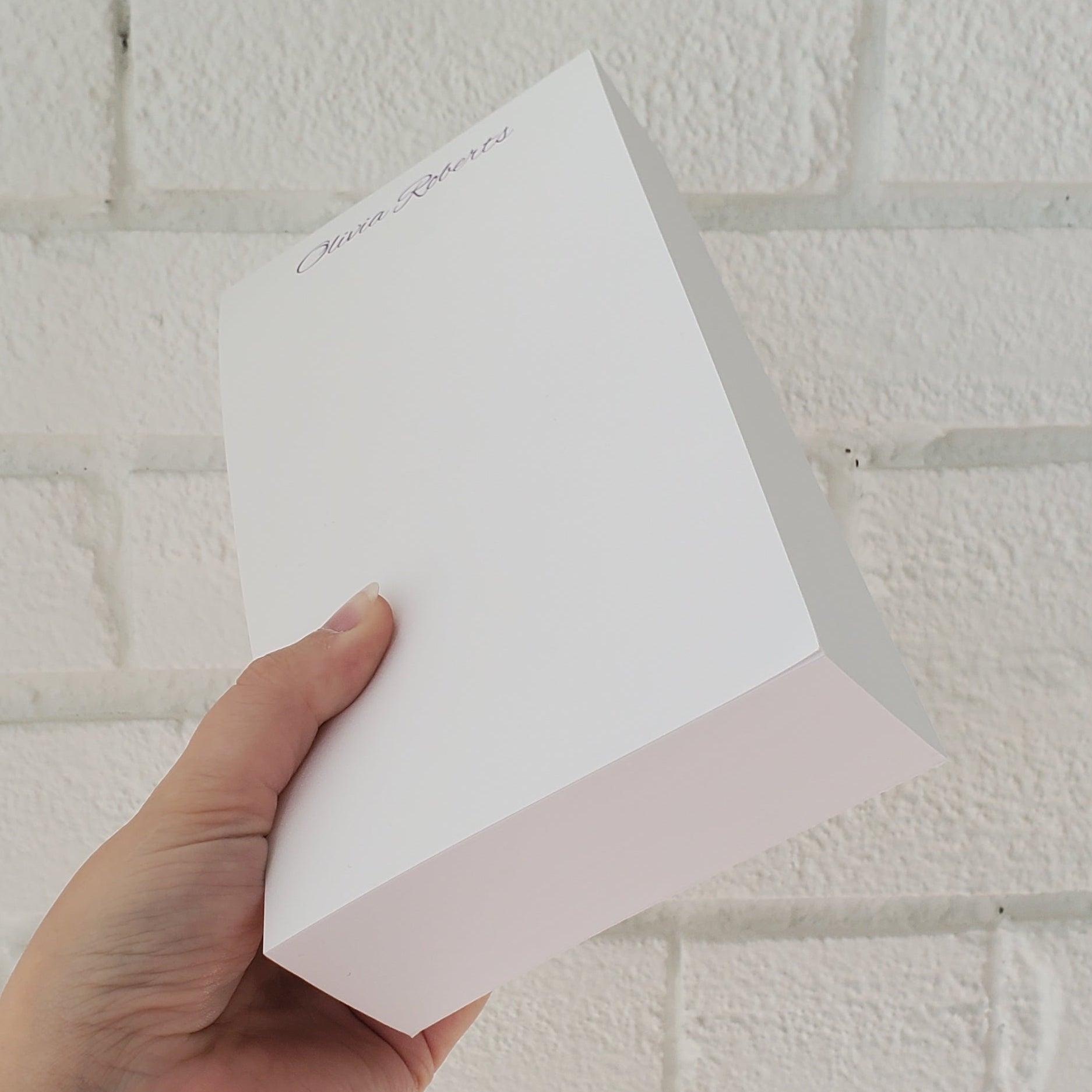 This personalized notepad includes 250 sheets gummed at the top with a monogram of your choice centered at the top. There are three size options available, the desk slab, list slab, and super slab. Desk slabs are 6 x 6in, list slabs are 4.5 x 8.5in, super slabs are 7.25 x 8.5in (see picture for size comparison). These make the perfect personalized gift for a wedding, promotion, or any celebratory occasion.