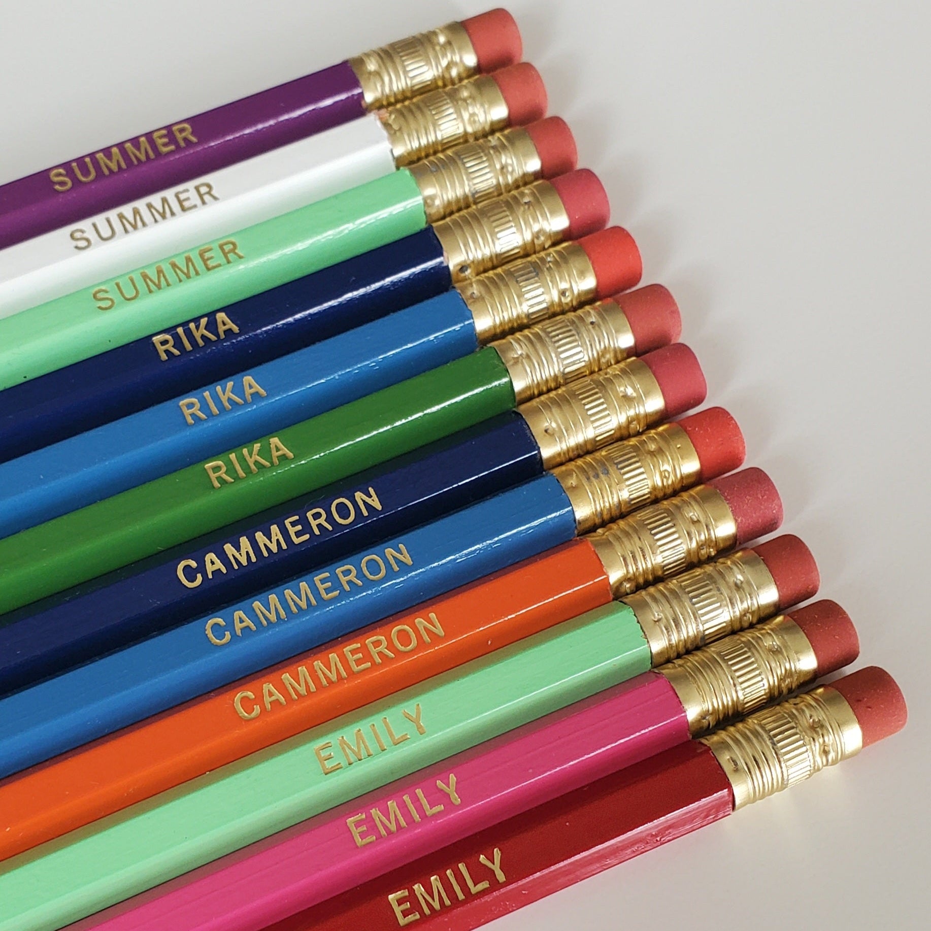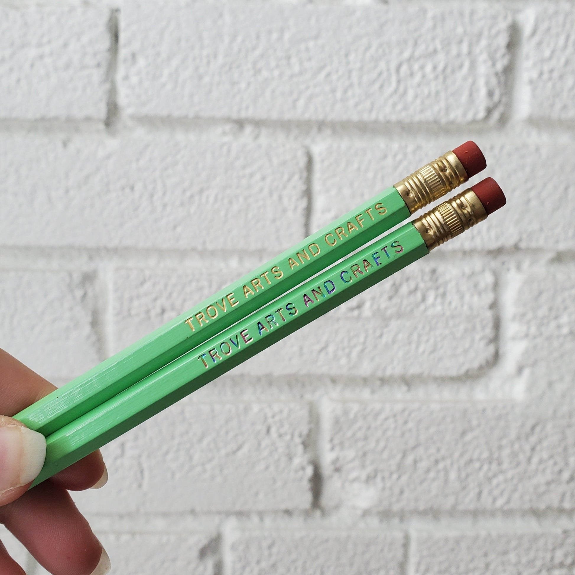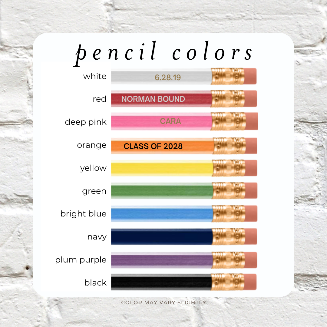 Celebrate back to school with a personalized touch! Perfect for student and teacher alike! These pencils are available in multiple colors and foil options. The name or saying in a set needs to be the same, but you can mix and match the foil and pencil colors! Personalization is hand pressed and may vary slightly on each pencil.