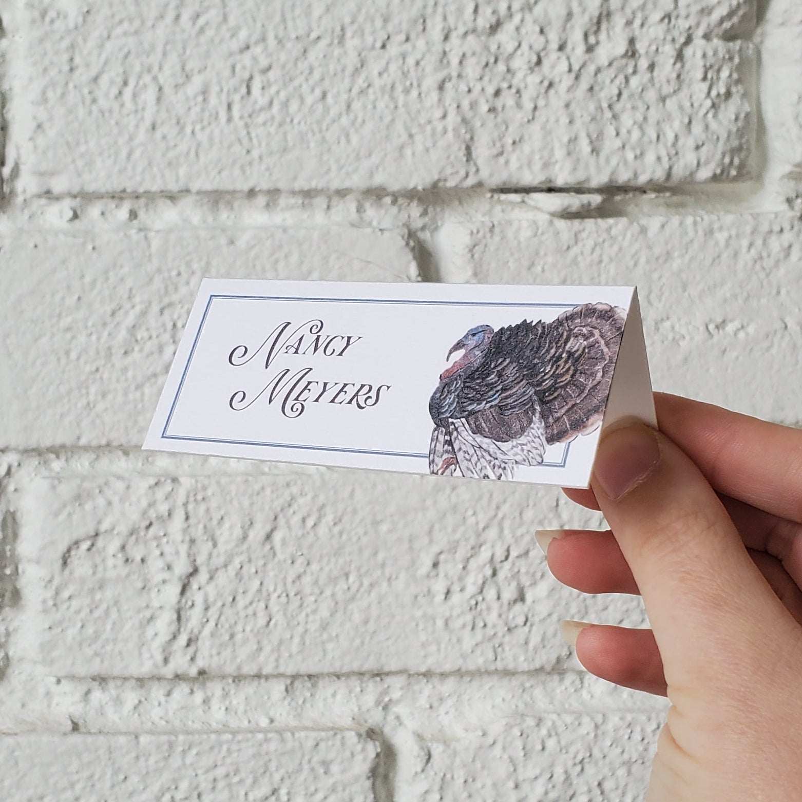 Elevate your Thanksgiving tablescape with personalized place cards at each setting. These personalized place cards can have each guest's full name (first and last) or just their first. Place cards are approximately 1.5in x 3.5in.