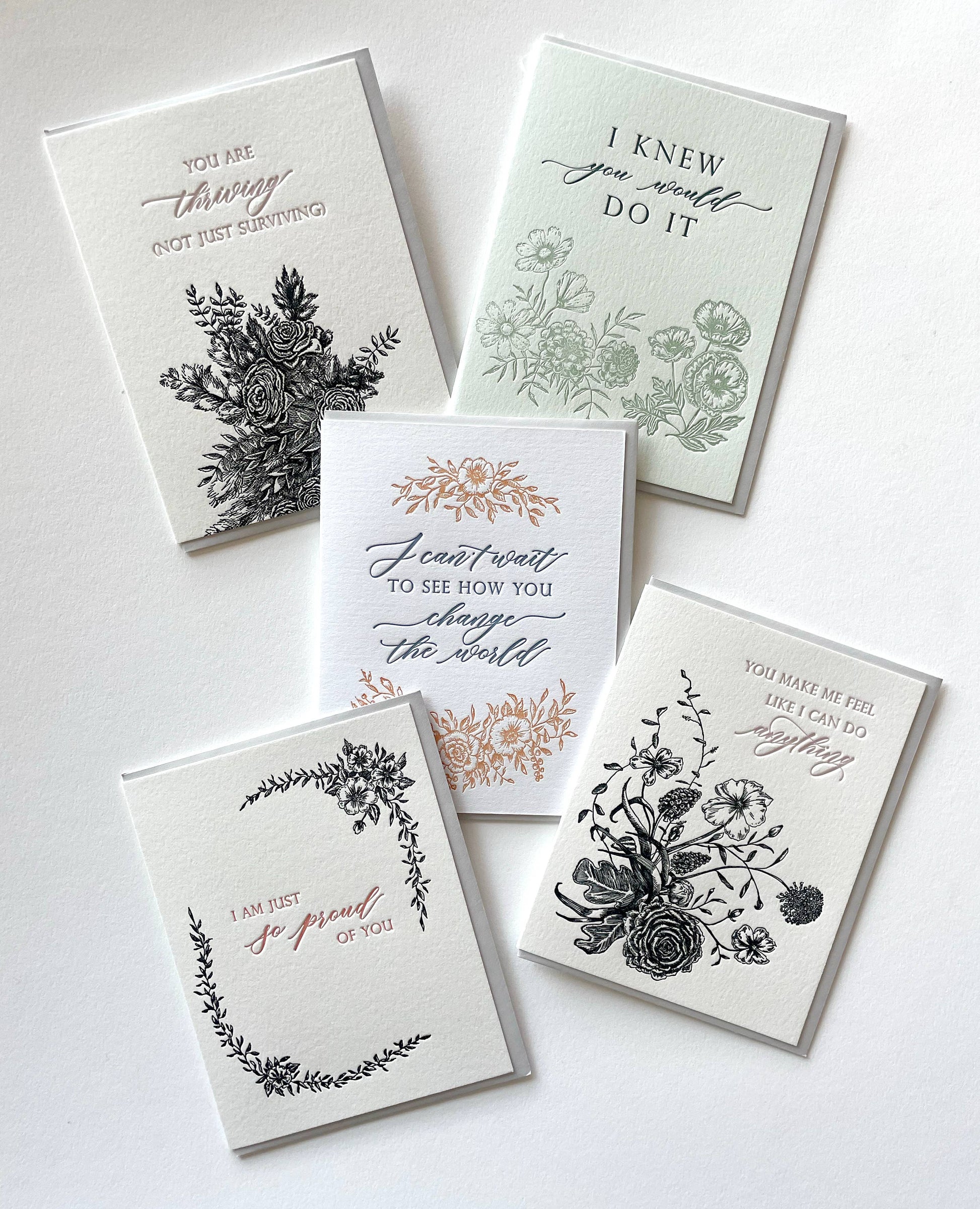 There's a big difference between saying you knew someone "could" do something and "would" do something. Send this heartfelt note to let that special someone know you always believed in them! Original floral artwork created by Rust Belt Love. These two color cards are handmade and pressed one at a time on antique presses. Premium quality cotton paper.