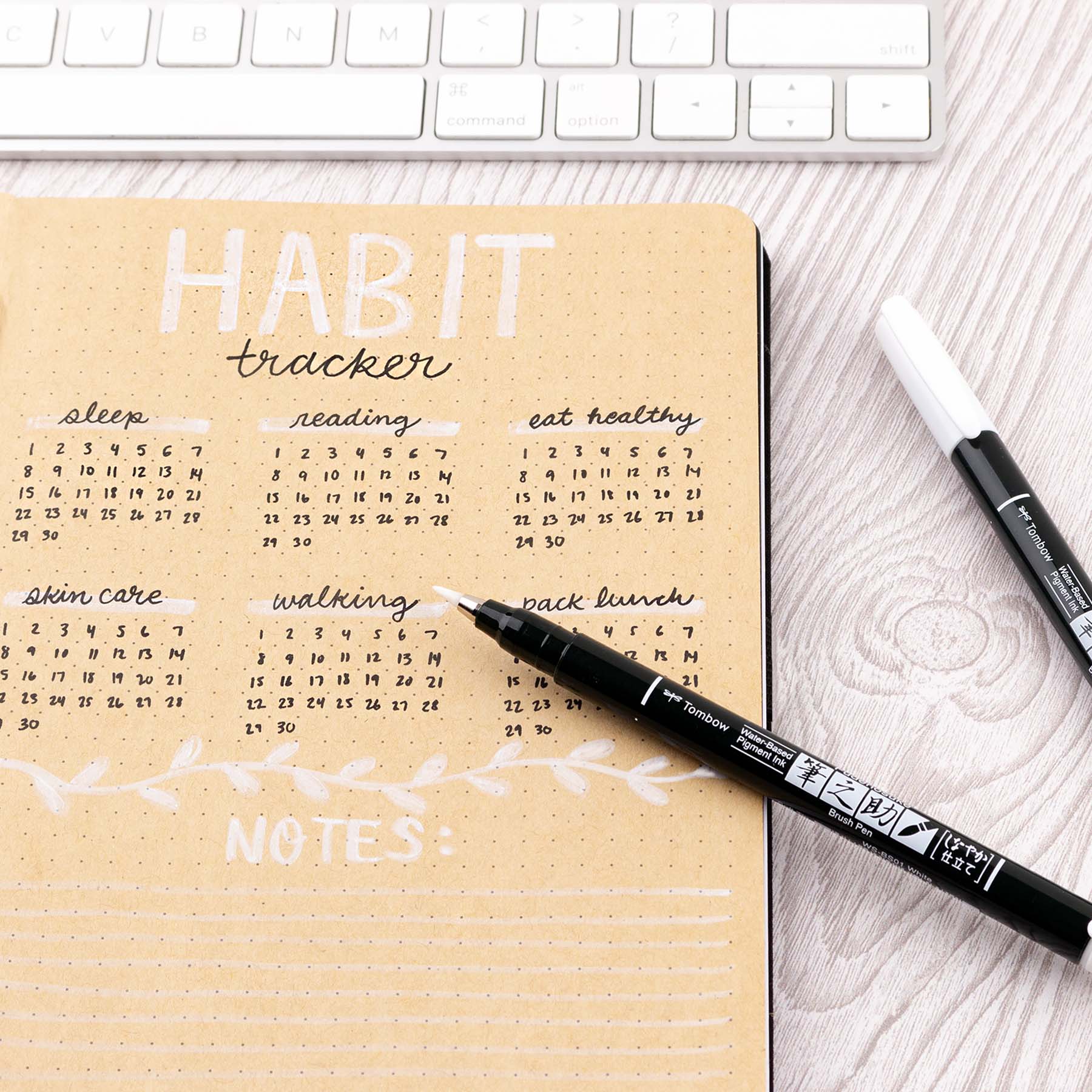 Tombow - WHITE Fudenosuke Calligraphy Brush Pens (set of 2)