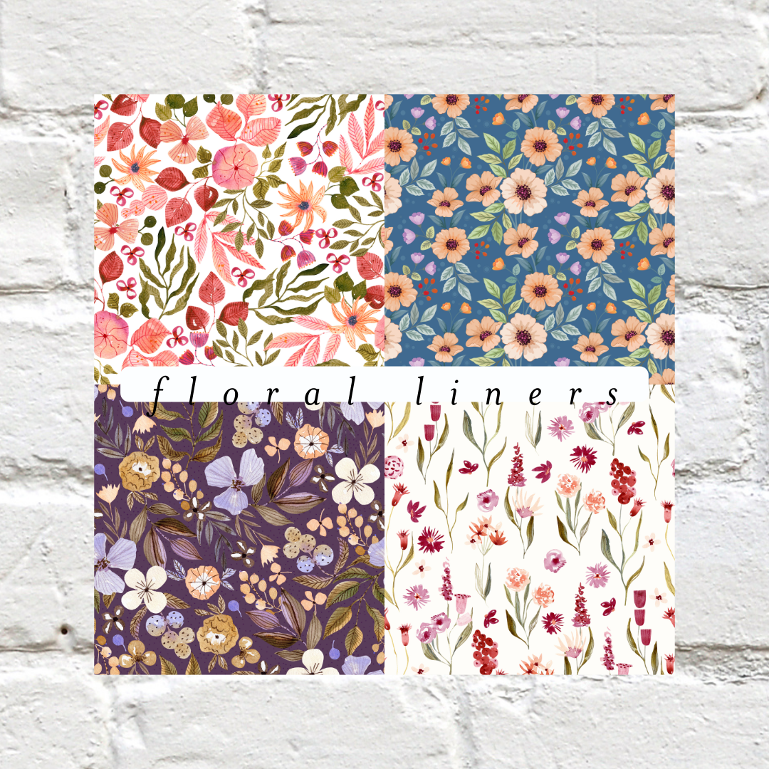Available in floral, lined, or solid liners with white or gold envelopes.